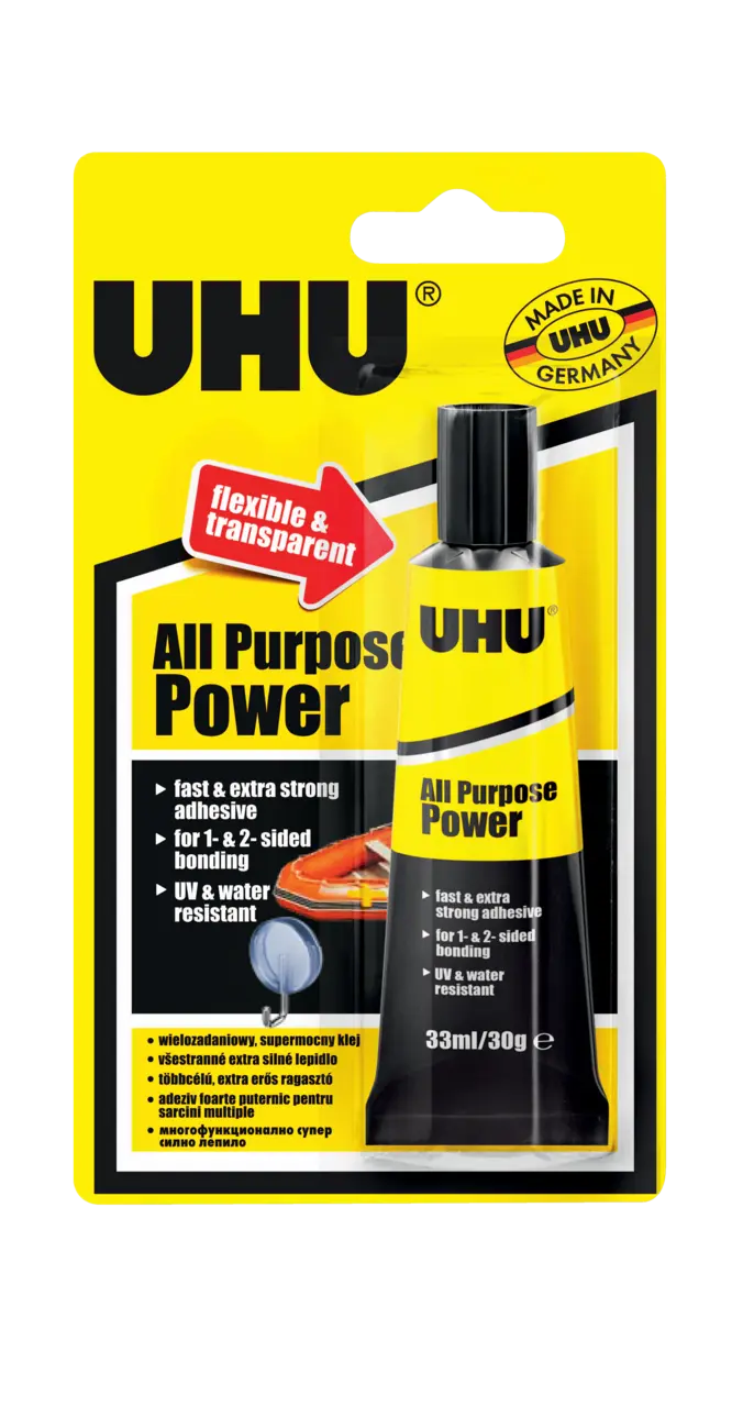 Universal - glues wood, wood based materials, plastics (ABS, hard and soft PVC, Plexiglas®, polystyrene, Resopal®), metal, glass, porcelain, ceramic, leather, rubber, felt, cork, fabrics, cardboard, paper, and much more. Ideal for visible glue joints and transparent materials.