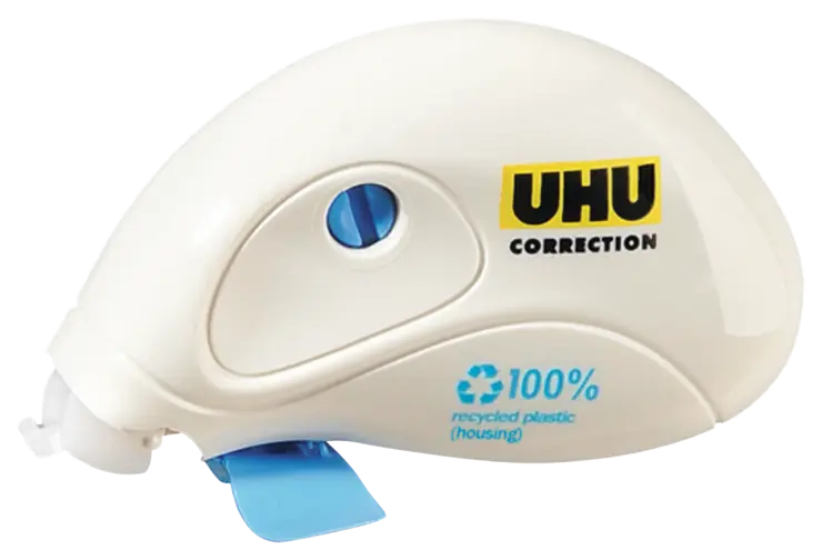 Correction Roller Compact. For fast, clean and precise correction of printed or handwritten texts. Suitable for almost all types of paper. Can be written on immediately, no drying time and solvent free. With integrated cap for tape protection and self standing support, tape level control and tape tightening screw. The tape length is 10.0m, the tape width is 5.0mm. The roller (housing) consists of 100 % recycled plastic and the packaging is made of more than 85 % recycled cardboard.