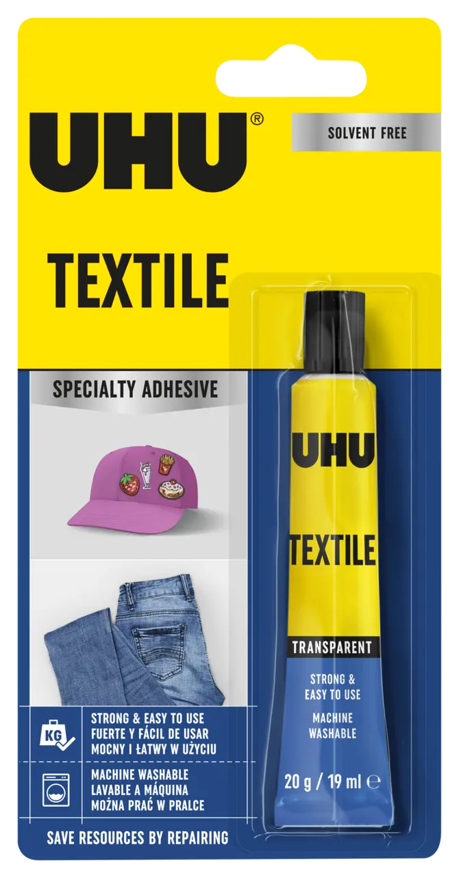 A brush or spatula may be used to apply the glue. In most cases it is sufficient to apply the glue to one side only. The parts may be assembled either immediately or after no more than approx. 5 minutes drying time. After approx. 30 minutes, the assembly can be ironed (iron setting according to the type of fabric; this shortens the bonding time and improves resistance to washing and cleaning.