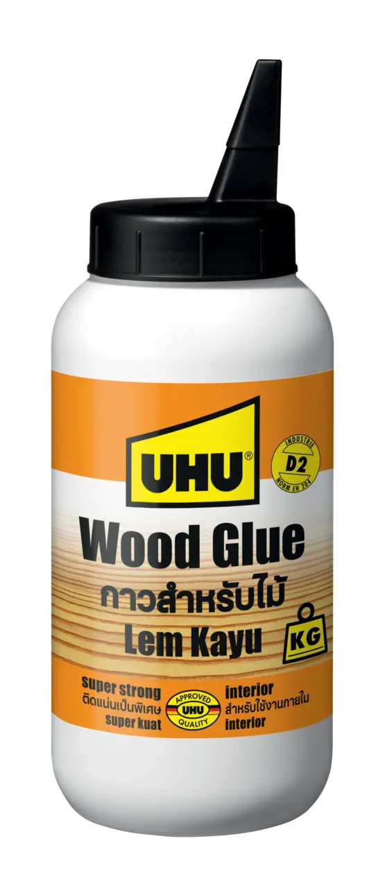 For moisture resistant bonding and laminating of practically all hard, soft and exotic types of wood. Suitable for well-fitting, non-load bearing wooden structures using, for example, finger joints, dovetail joints, mortise and tenon joints, dowels and springs. Suitable for indoor applications such as doors and furniture in, for example, living rooms and offices. For surface bonding wood, hard and softboard, chipboard, multiplex plywood, MDF, paper, cardboard and hardboard. Also suitable for laminating veneer and hard plastic sheet (HPL, Formica, Duropal, Resopal) on a wooden surface. EN 204 D2: Interior spaces in which increased relative humidity occurs occasionally and for a short time, whereby the level of wood humidity remains below 18 %.