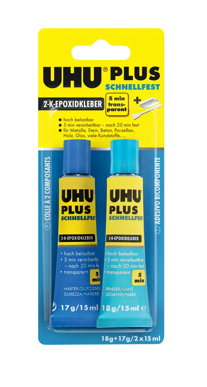Applicare il prodotto su superfici asciutte, pulite e prive di polvere e grasso. Aprire l’ugello piegando il tappo di chiusura. Avvitare il beccuccio miscelatore presente nella confezione sull’ugello della siringa. Premere lo stantuffo per far uscire la colla. Applicare la colla su una sola superficie da incollare oppure, in caso di materiale ruvido, su entrambe le superfici. Grazie al miscelatore la resina e il legante sono già miscelati nelle proporzioni ottimali. Far aderire perfettamente le superfici da incollare senza esercitare pressione. Tempo di lavorazione a temperatura ambiente è di circa 5 minuti. A temperatura ambiente l’incollaggio avviene in circa 20 minuti e dopo 12 ore è completamente fissato. Dopo l’uso svitare il miscelatore e smaltirlo. Pulire l’ugello e richiuderlo con il cappuccio allegato. Il miscelatore non può essere riutilizzato, in quanto contiene residui di colla destinati a indurire. Per un successivo incollaggio usare il secondo miscelatore allegato. Resina e induritore non devono entrare in contatto fra loro, se non esclusivamente al momento dell’uso. Qualora si dovessero esaurire i beccucci è possibile estrudere l'adesivo in un contenitore e miscelarlo manualmente.
