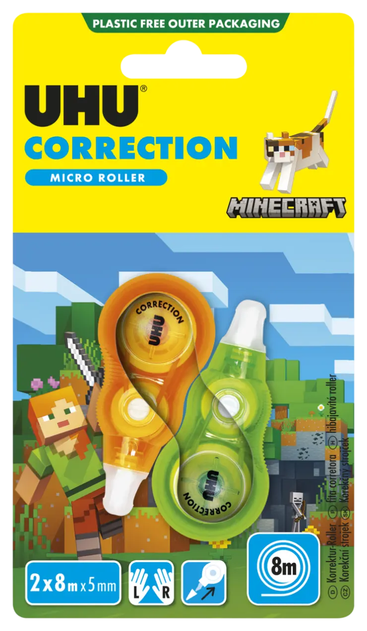 Aprire il tappo, posizionare il correttore sul punto che deve essere corretto e trascinare il correttore all'indietro, premendo lievemente. Può essere sovrascritto immediatamente. Se il nastro si allenta, può essere aggiustato regolando l'avvolgitore nastro incorporato. Chiudere il tappo protettivo dopo l'uso. Può essere utilizzato da qualsiasi angolazione, rendendolo ideale anche per i mancini.