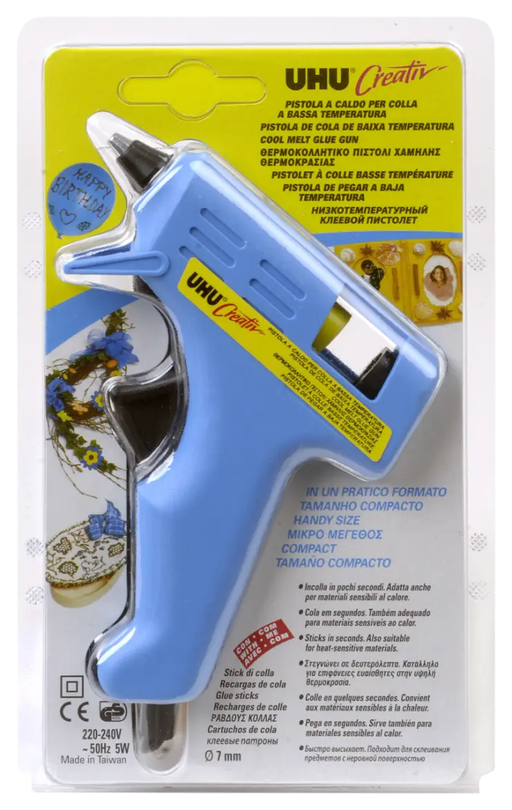 Pistola per colla a caldo per hobbisti e per scopi decorativi.