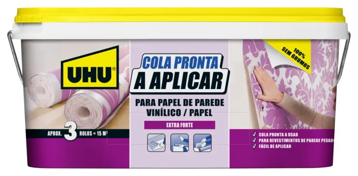 Utilize UHU Cola Pronta a Aplicar Revestimentos Papel de Parede/TNT para colocar papéis de parede não tecidos.
