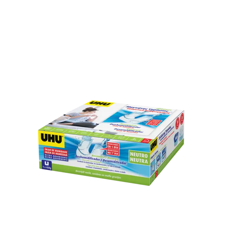 450g funciona durante aproximadamente 3 meses numa sala até aproximadamente 45 m³ e absorve aproximadamente 0,5 litros de água, dependendo da temperatura, humidade e tamanho do espaço.