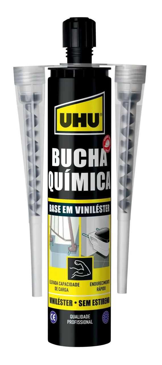 Preparar o furo de ancoragem e tirar o pó (no mínimo limpar 2x e soprar 2x). No caso de materiais de construção não maciços, colocar uma bucha de injeção no furo. Temperatura da bisnaga: no mín. +5°C. Desapertar e remover a tampa do cartucho, cortar a embalagem por baixo do tampão em metal e enroscar bico misturador estático no cartucho. Colocar o cartucho na pistola. Bombear alguns cm de produto (até que se verifique uma mistura de cor igual). Não utilizar este material. Injetar o produto no furo, até enchê-lo cerca de 2/3. Evitar a oclusão de ar. Inserir a âncora, dentro do tempo fixado com movimento rotativo no furo. Durante o período de endurecimento não submeter a cargas. Fechar bem a bisnaga depois do uso. Prazo de validade limitado após a abertura. Reutilizável com novo bico misturador estático.