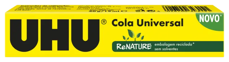 Cola Universal ReNATURE é uma cola inovadora, com alta performance e com uma excelente aderência inicial. Adere com a mesma firmeza que a versão clássica. Ideal para o escritório, escola, manualidades e diversas reparações. Seca rapidamente , inodoro e lavável quando húmida. Cola vários materiais, incluindo esferovite e PVC. Uma vez aplicada, a cola mantém-se ajustável durante alguns minutos. Tubo e tampa feitos de materiais 100% reciclados.