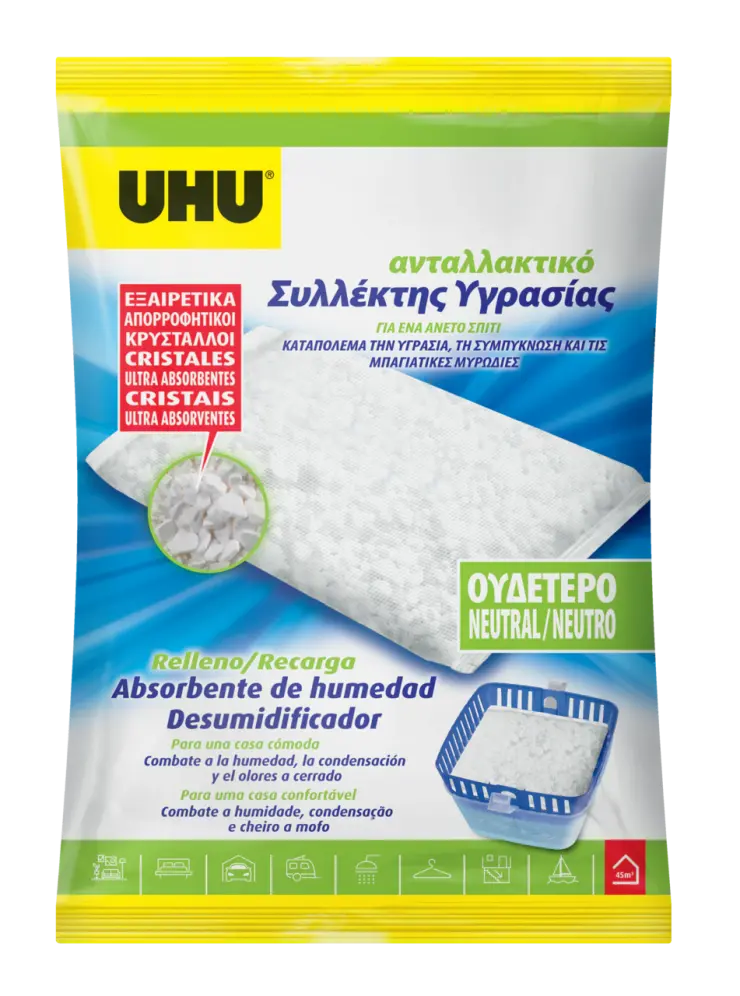 Combate a condensação e odores de humidade. O Desumidificador é inodoro, silencioso, não consome energia e é fácil de reabastecer. O Desumidificador reduz o nível de humidade relativa em todos os espaços fechados com pouca ou nenhuma ventilação. Ideal para cave, garagem, sótão, closet, caravana, barco, etc.