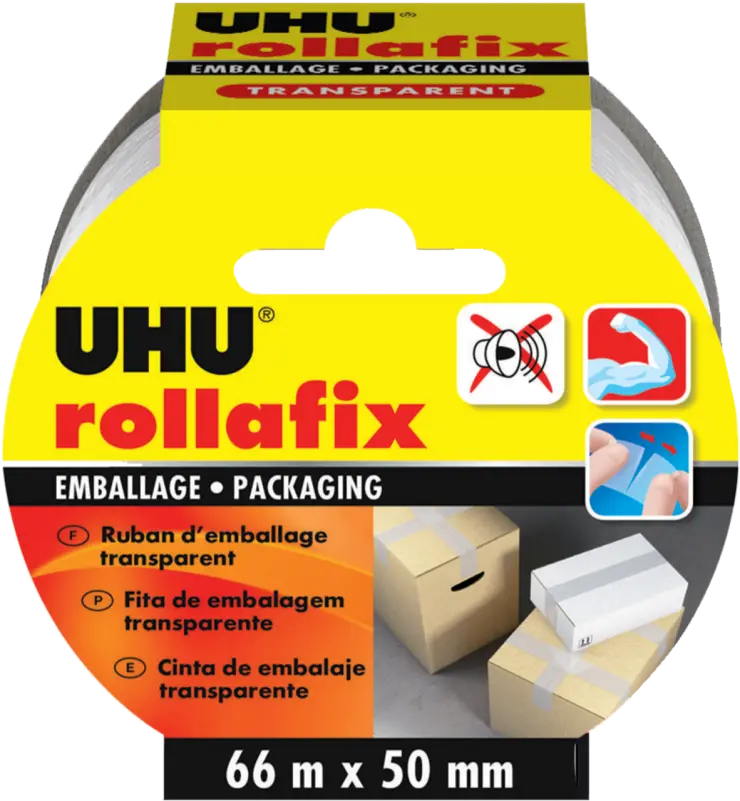 Fita de embalagem de qualidade superior. Desenrola-se facilmente e sem fazer barulho. Cola com firmeza e pode ser cortada à mão com facilidade. Disponível nas cores castanho e transparente.